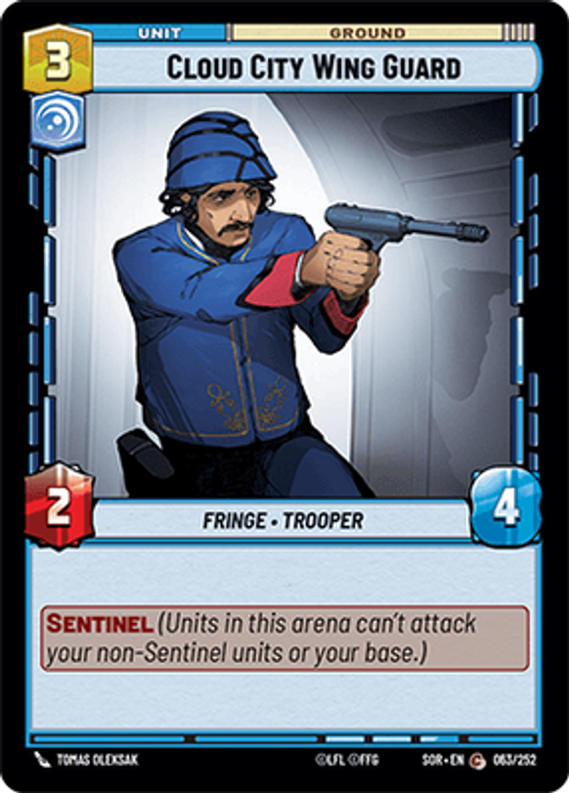 Cloud City Wing GuardFringe • TrooperSentinel (Units in this arena can't attack your non-Sentinel units or your base.)Power: 2Health: 4Tomas Oleksak