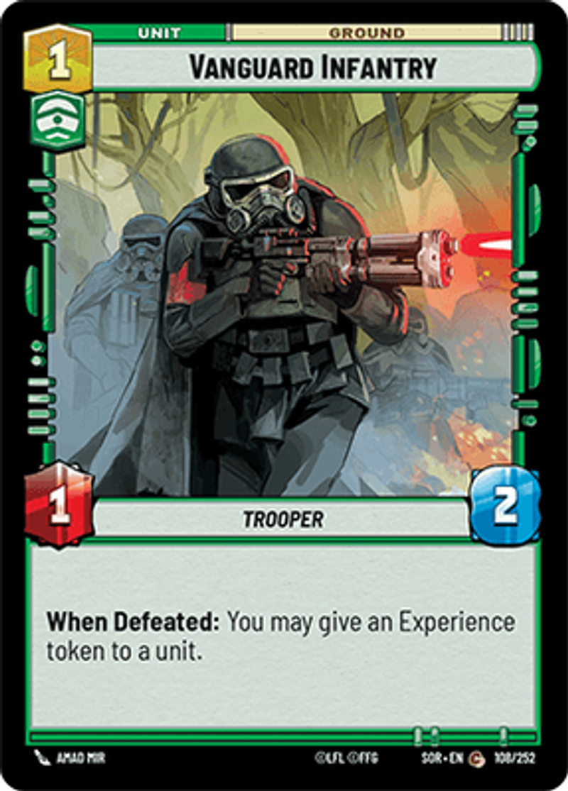 Vanguard InfantryTrooperWhen Defeated: You may give an Experience token to a unit.Power: 1Health: 2Amad Mir