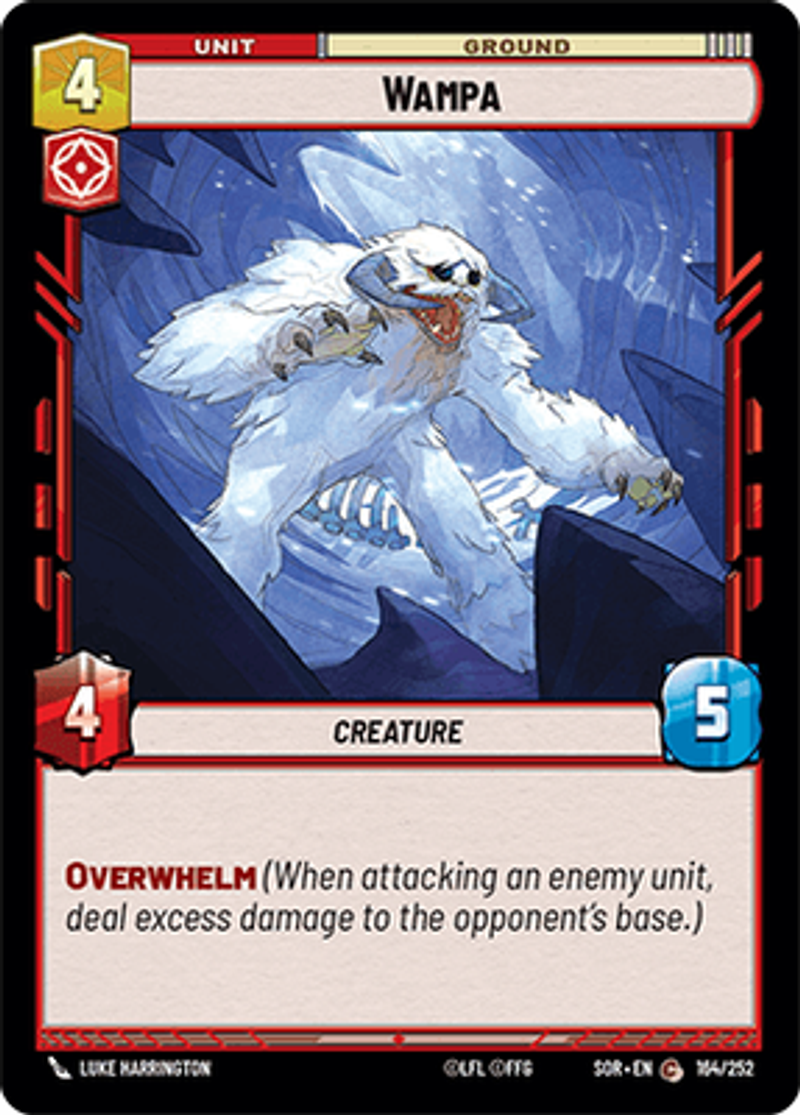 WampaCreatureOverwhelm (When attacking an enemy unit, deal excess damage to the opponent's base.)Power: 4Health: 5Luke Harrington