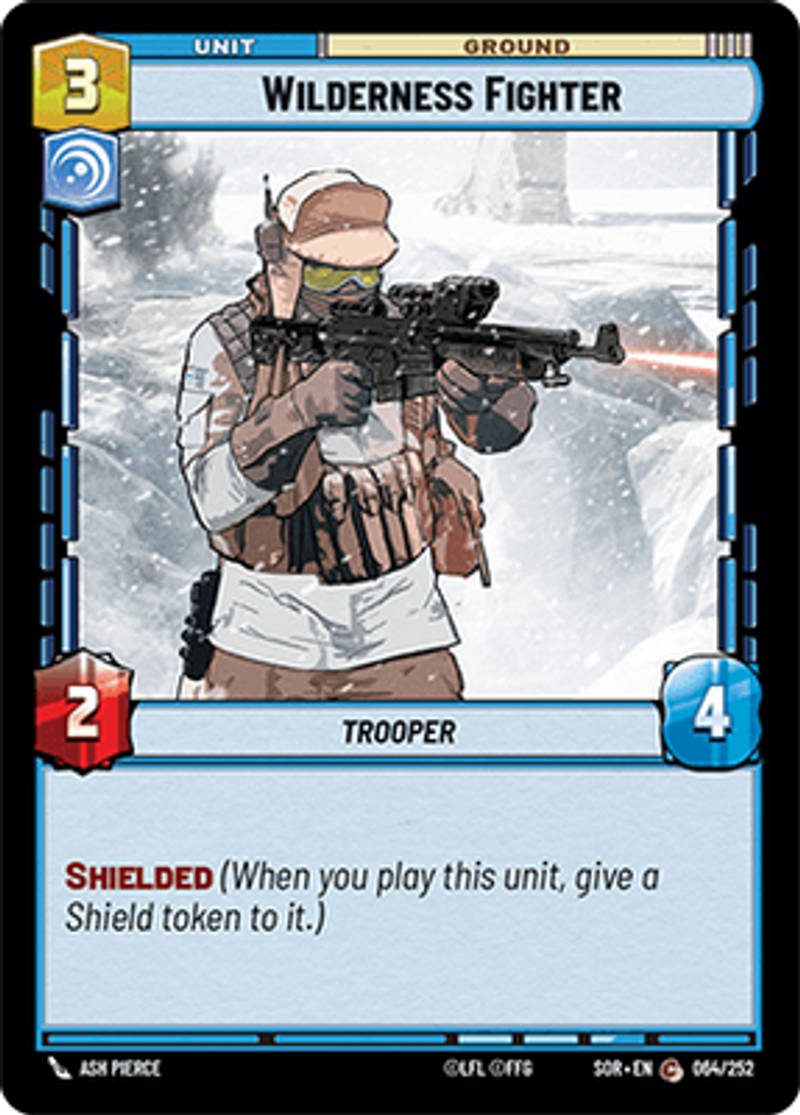 Wilderness FighterTrooperShielded (When you play this unit, give a Shield token to it.)Power: 2Health: 4Ash Pierce